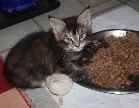 Mit 4 Wochen bin ich schon eine kleine Maine Coon -Lady. |